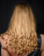 The hair from this show merges two distinct textures for a striking contrast and was inspired by 90’s and early 2000’s references. From the front, the hair appears soft and wispy, it’s smooth through the mid-lengths, whilst tight curls define the ends.